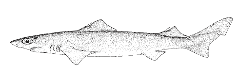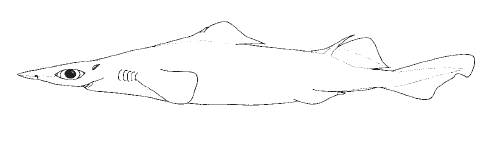 Similar Species: Arrowhead Shark, Deania profundorum. Snout greatly elongated. First dorsal fin very low and keel-shaped, origin over pectoral-fin bases. Second dorsal-fin spine much larger than first. Pectoral fin free rear tip rounded. A low ventral keel on pelvic-caudal space in front of caudal fin.