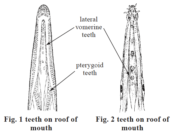 Unique Characteristics: Pterygoid teeth absent. Lateral vomerine teeth few and widely spaced. Lateral vomerine teeth present at all stages. Stomach black