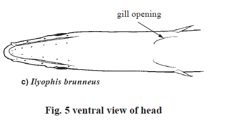 Unique Characters: Head more elongate, mouth extends to level of posterior edge of eye or beyond. Gill openings separate, although they may be closely approximated. Scales present. Scales present. Gill openings parallel or nearly so, separated by a distance about equal to their own length.