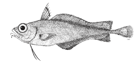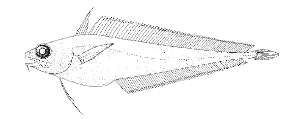 Unique Characters: (No Common Name) Codling Laemonema melanurum. Snout rounded. No black fossa on abdomen. Distal 2/3 of caudal fin and triangular-shaped areas at posterior end of second dorsal and anal fins prominently black with thin white outer margins. No prolonged spine on first dorsal fin; dorsal-fin rays 7+53-61. Pectoral-fin rays 25-27. Anal-fin rays 52-59.