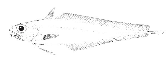 Family Moridae – Body elongated, rounded in front of abdomen, more laterally flattened behind, tapering to a narrow caudal peduncle. Teeth few or lacking on roof of mouth. Two dorsal fins, the first short-based and triangular, the second long-based, its length more than half total length. Anal fin long-based, its length 1/2 of, or longer than, that of second dorsal fin. Pelvic fins thoracic, small, with 2-6 rays, the bases well separated. Caudal fin small, margin rounded to slightly forked, separated from dorsal and anal fins. Abdominal light organ in some species, seen externally as small, black naked fossa anterior to vent.