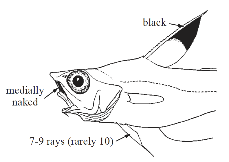 Unique Characters: First dorsal fin with a prominent black tip or membrane between serrated spinous ray and first branched ray. First dorsal fin with a black membrane between serrated spinous dorsal ray and first branched ray. Pelvic-fin rays 7.