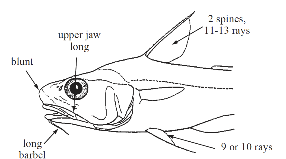 Bluntsnout Grenadier Nezumia sclerorhynchus. First dorsal fin uniformly dusky or dark. Pelvic-fin rays 7-10.