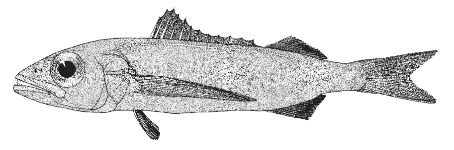 Unique Characteristics: Eye very large, its diameter almost as long as snout. Pectoral fins very long, nearly reaching anal-fin origin. Lateral line single, running closely to dorsal contour, ending slightly before end of second dorsal fin.